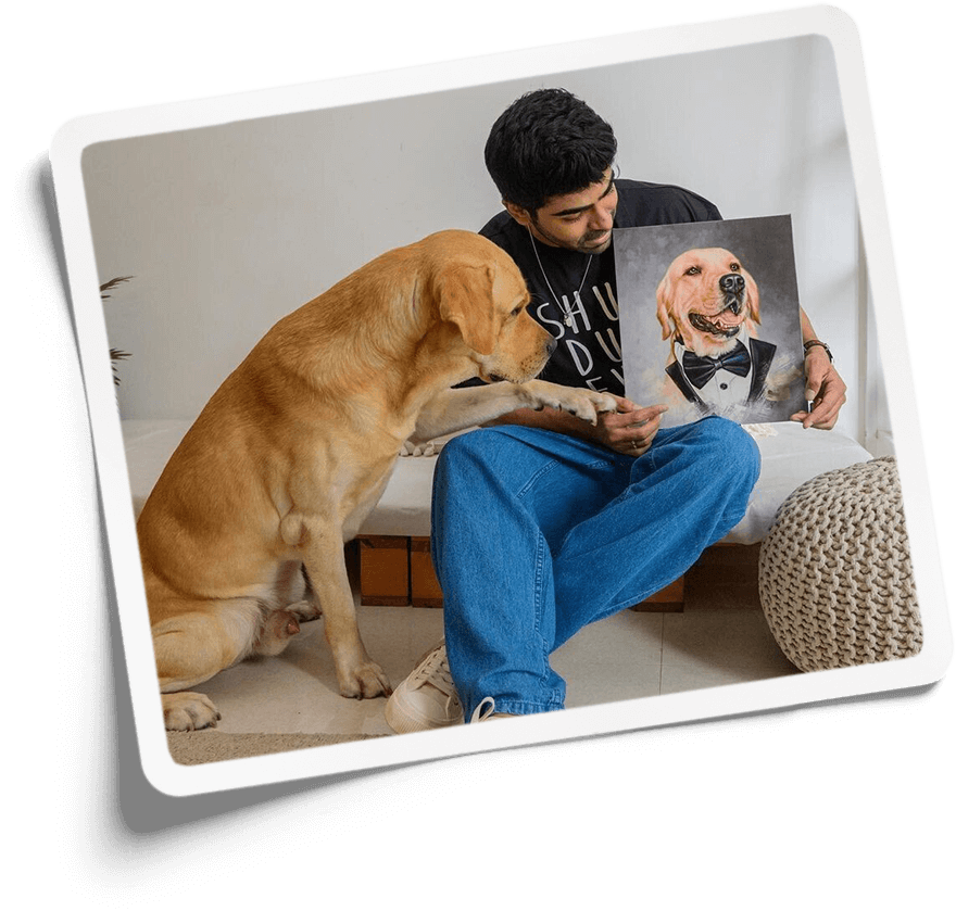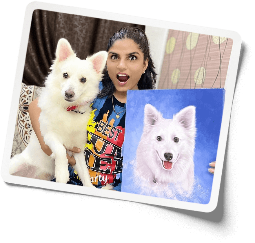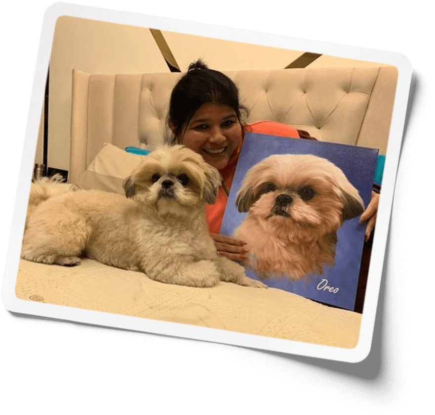 This painting is Surreal, it looks exactly like my baby pooch & it means so much to me. Can’t just express how excited I’m when I saw a msg on my phone that your Pawstro portrait is out for delivery Once after receiving it And seeing this painting, I was completely amazed, As I couldn’t have even imagined that it is gonna look so lively & soo real it’s just Surreal. But you guys made it come true, I was soo.. happy that I can’t just describe it in words